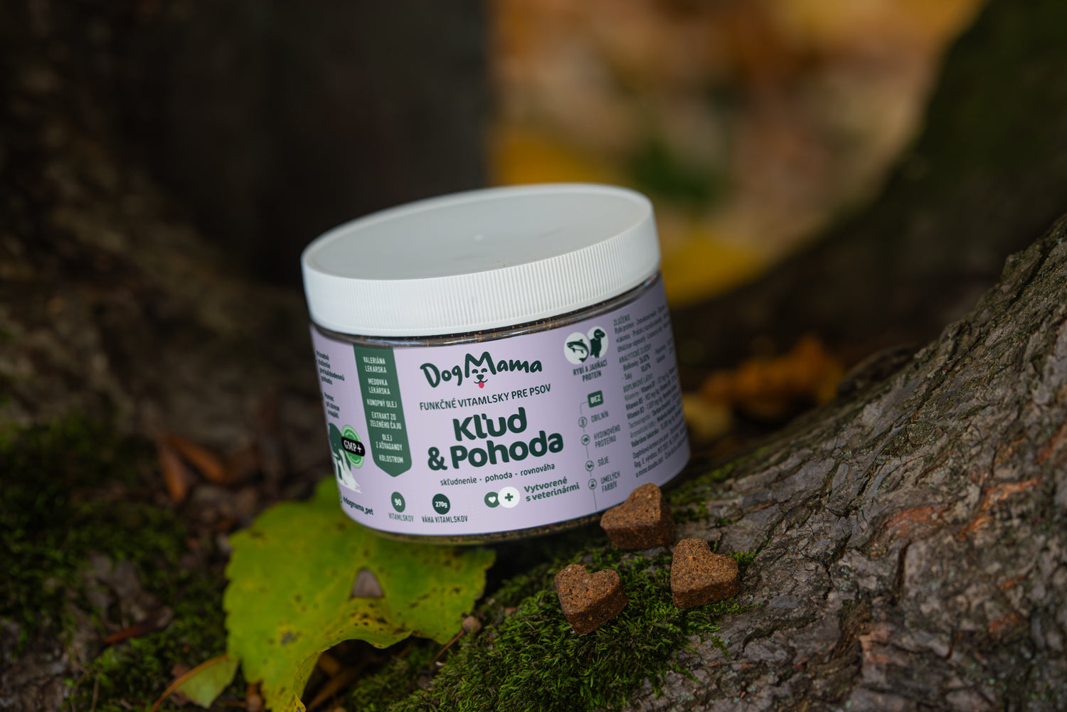 Pomôžte svojmu psíkovi lepšie zvládať nečakané a stresujúce situácie s väčším pokojom a pohodou. Vitamlsky DogMama Kľud & Pohoda sú vyrobené z byliniek a funkčných látok, ktoré podporujú činnosť a stabilizáciu nervového systému. Kombinácia bylín, ako je valeriána lekárska, medovka lekárska a ašvaganda, navodzuje psychickú pohodu a znižuje napätie u nervóznych psov. Medzi ďalšie aktívne látky, ktoré pomáhajú pri napätí a strese, patrí kolostrum, konopný olej a extrakt zo zeleného čaju.